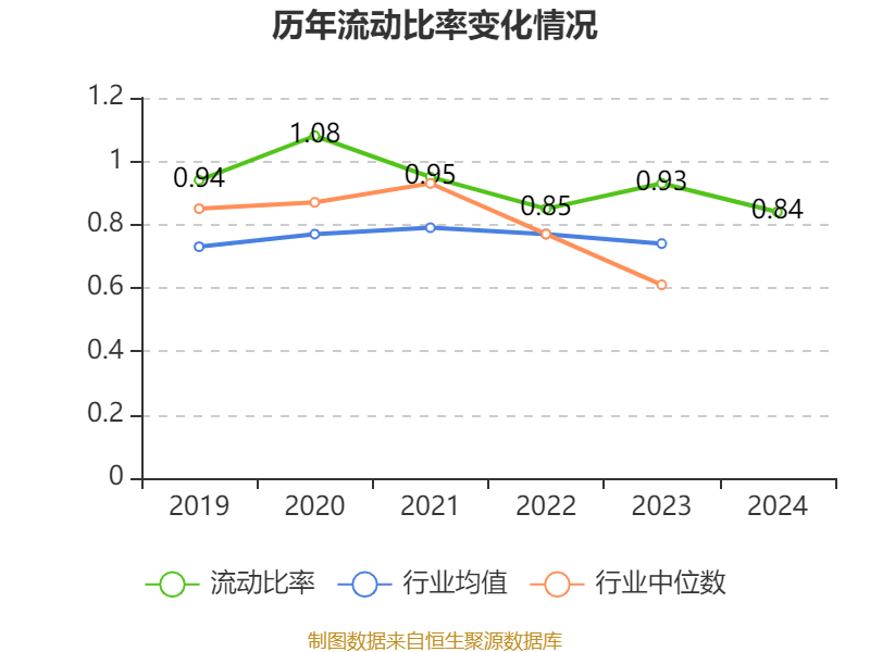 2024年,公司流动比率为0.84,速动比率为0.57。