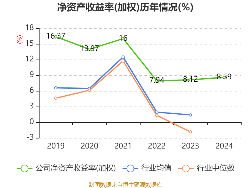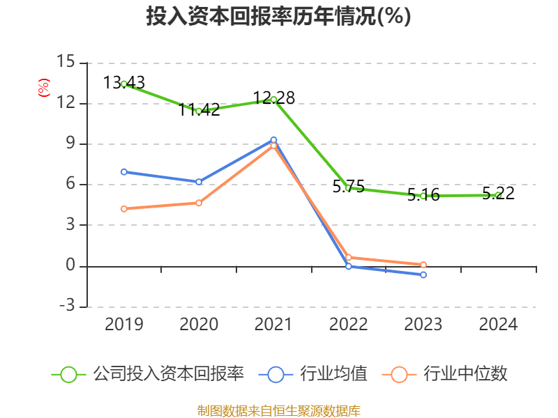 数据显示,2024年公司加权平均净资产收益率为8.59%,较上年同期上升0.47个百分点。公司2024年投入资本回报率为5.22%,较上年同期上升0.06个百分点。