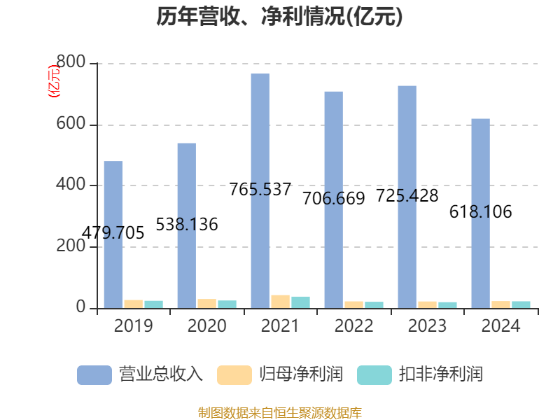 中证智能财讯南钢股份(600282)3月20日披露2024年年度报告。2024年,公司实现营业总收入618.11亿元,同比下降14.79%;归母净利润22.61亿元,同比增长6.37%;扣非净利润21.83亿元,同比增长15.40%;经营活动产生的现金流量净额为32.21亿元,同比增长20.39%;报告期内,南钢股份基本每股收益为0.3667元,加权平均净资产收益率为8.59%。公司2024年度分配预案为:拟向全体股东每10股派现0.85元(含税)。