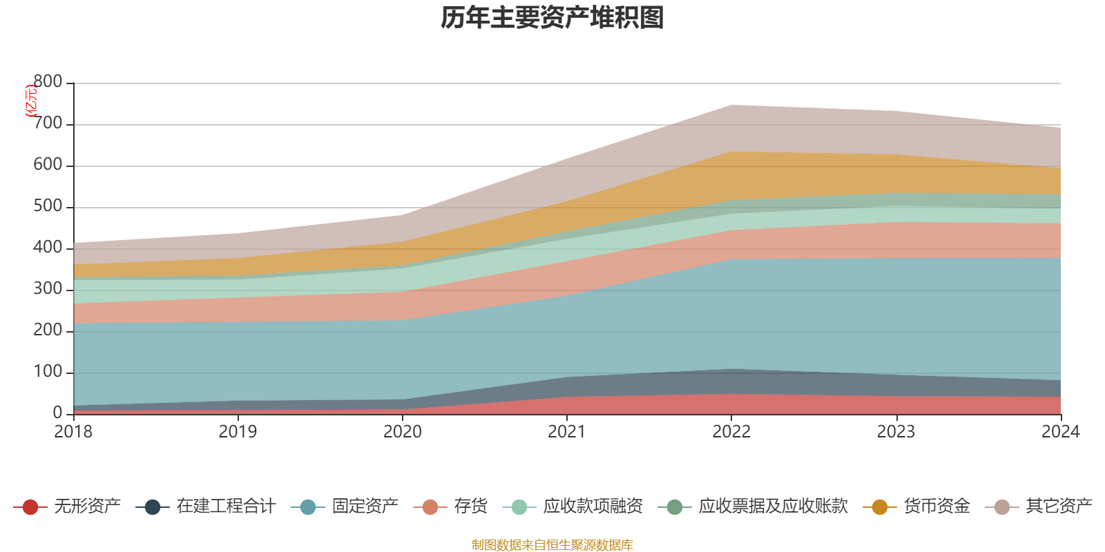 资产重大变化方面,截至2024年末,公司固定资产较上年末增加4.88%,占公司总资产比重上升4.26个百分点;货币资金较上年末减少32.34%,占公司总资产比重下降3.6个百分点;其他非流动资产较上年末增加172.06%,占公司总资产比重上升1.66个百分点;在建工程合计较上年末减少23.18%,占公司总资产比重下降1.32个百分点。
